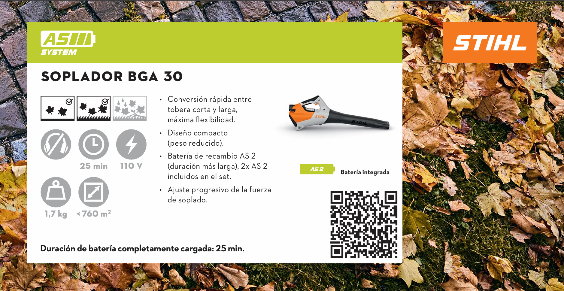 Tiempo máx. de funcionamiento de la batería AS 2: 25 min